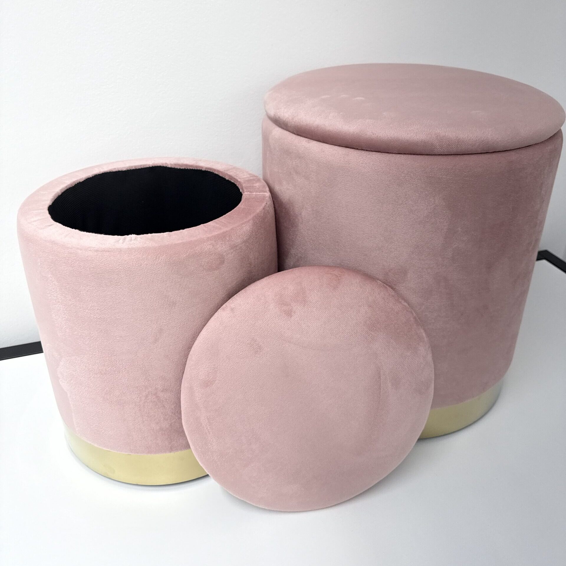 Set 2 pouf contenitore LONDON Rosa con anello dorato